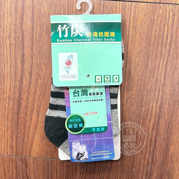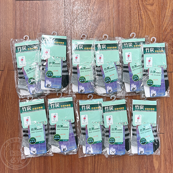 4605 台灣製造 學童竹炭 條紋船型襪-12雙