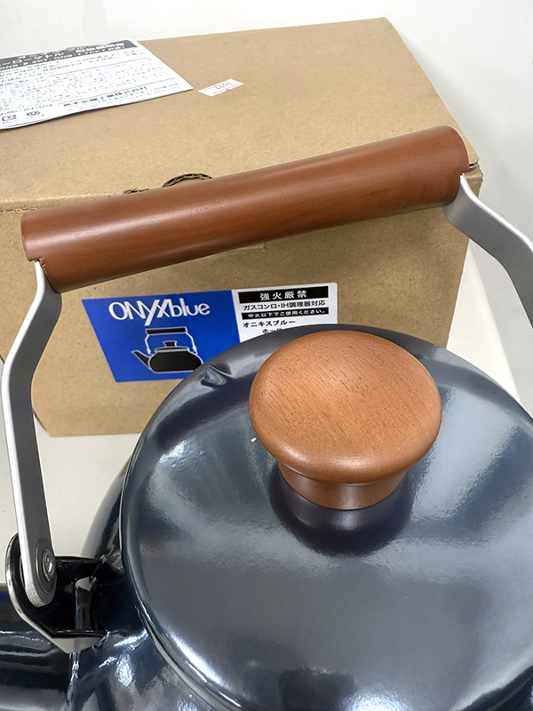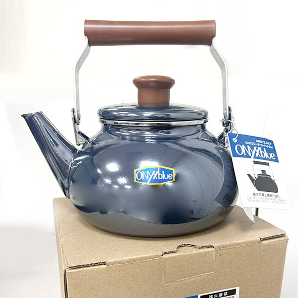 日本高木金屬 圓形炫澤珍珠藍木柄琺瑯茶壺-2.3L