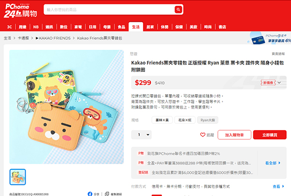 2916 正版授權 Kakao Friends票夾 零錢包 附鎖圈