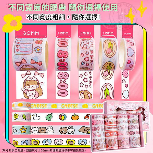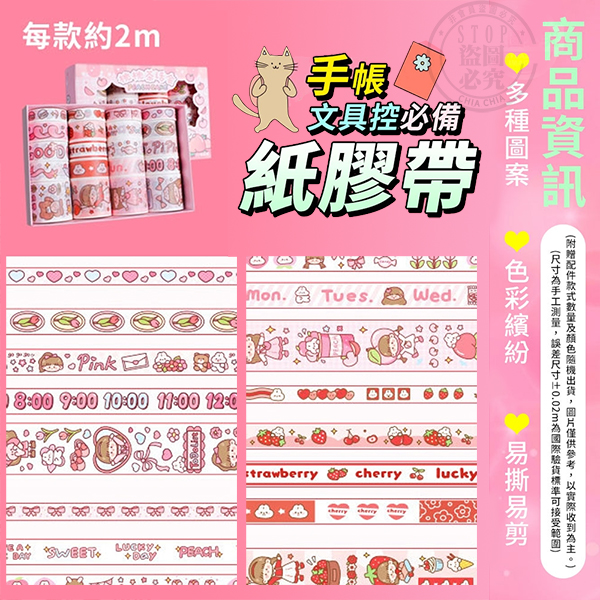 10盒以上 $42元/盒 * 可愛繽紛的手帳紙膠帶! * 豐富的圖案,貼在手帳上做裝飾,繽紛好看 * 易撕易剪,可手撕或剪刀,剪出你需要的長度 30mm、15mm、10mm不同寬度粗細的膠帶 通通都有,隨你喜歡選擇使用 * 【商品尺寸】-長度2m 【下單前務必詳閱購物須知,下單視為接受"購物須知"內容】 【下單不保留商品,要結單請主動與客服聯繫】 【公司提供多種下單管道,庫存數量僅供參考,實際數量請洽小幫手】