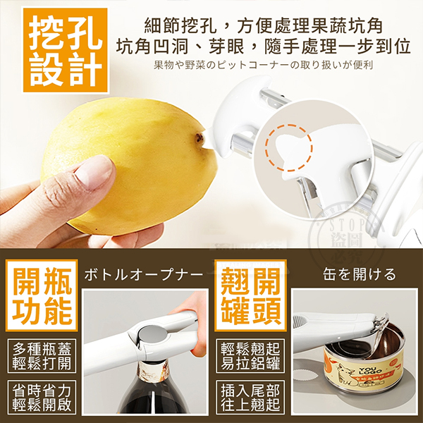 * V 刨皮 V 刨絲 V 挖孔V 開瓶 V 翹罐頭