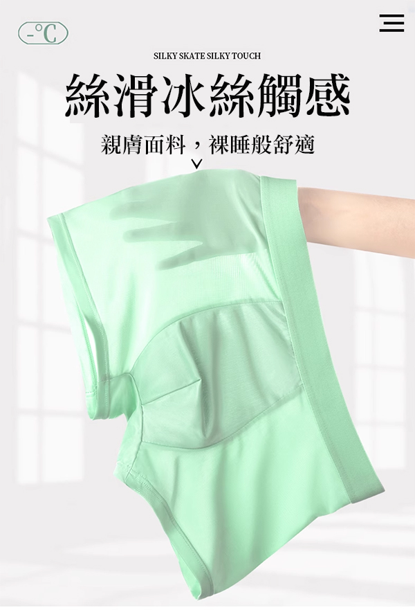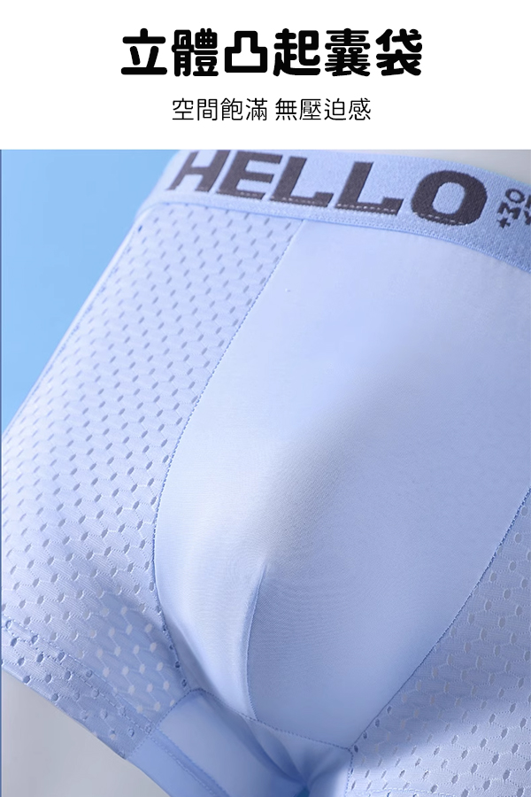 * 3D立體剪裁,冰絲涼爽,打造男人的舒爽全新體驗