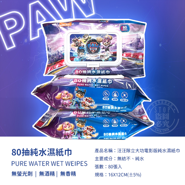 5590 正版 汪汪隊立大功 純水有蓋濕紙巾-80抽