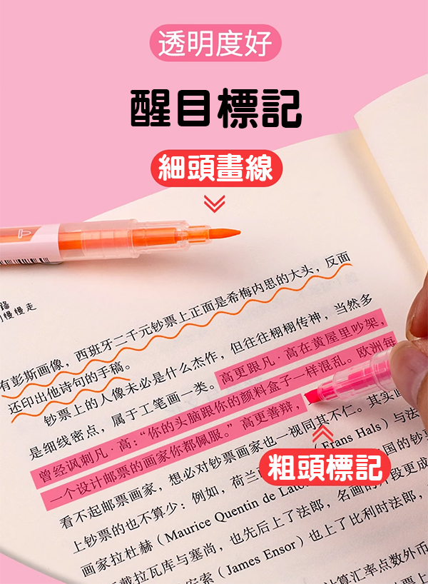 25包以上 $16元/包 * 提升學習效率,讓資訊一目了然,無論是筆記、閱讀、畫畫或是整理文件 螢光筆將成為您不可或缺的好幫手! * 粗+細,雙頭標記,方便您同時標示不同內容或重要資訊 使筆記更加清晰有條理! * 一包6色 【下單前:務必"詳閱購物須知,下單視為接受"購物須知"內容】 【下單不保留商品,要結單請主動與客服聯繫】 【公司提供多種下單管道,庫存數量僅供參考,實際數量請洽小幫手】