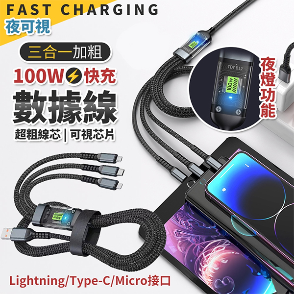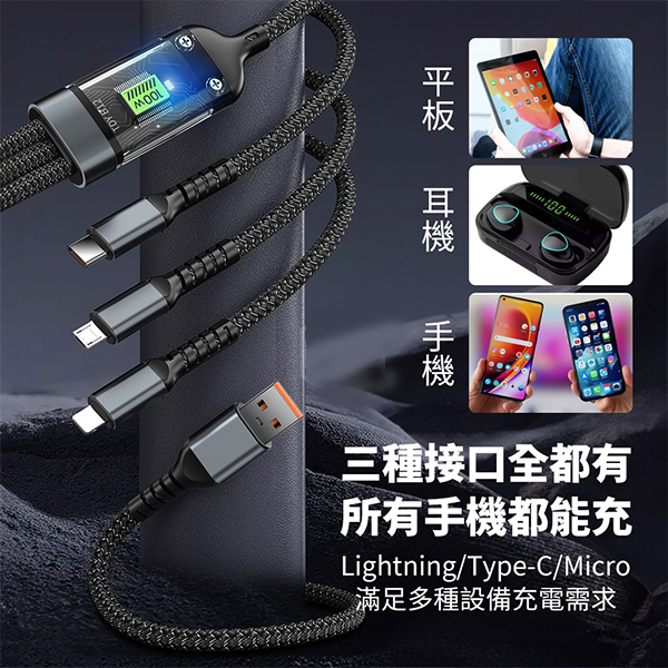 * 三合一設計,Lightning、Type-C和Micro接頭,兼容多種設備,解決您的煩惱!