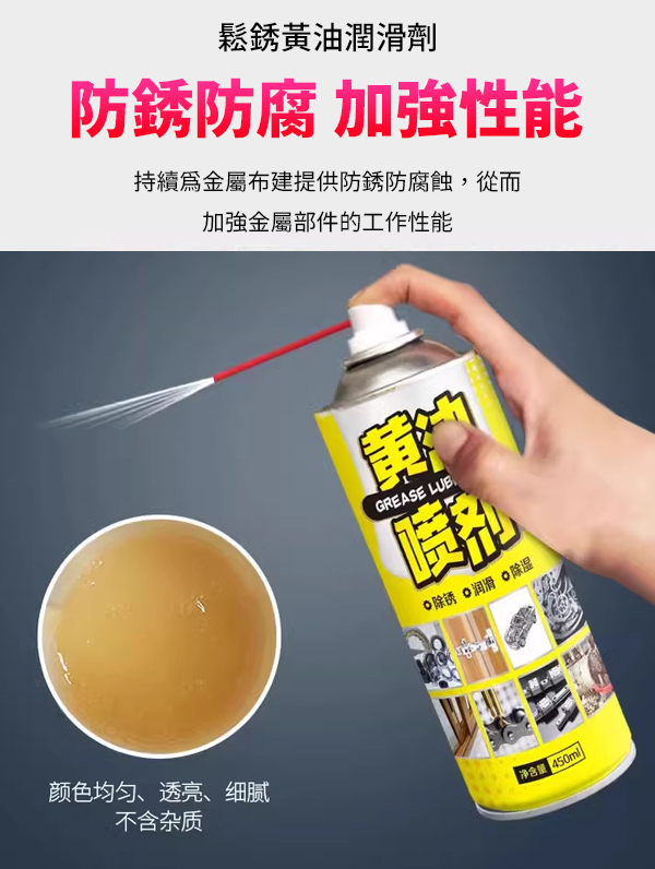 * 特色:使用噴管,可精準噴在需要保養修護的部位,不會大面積沾染到旁邊的物件。