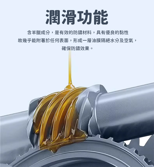 潤滑:提供機件及工具潤滑,使用起來順暢無比,沒有磨擦的雜音。