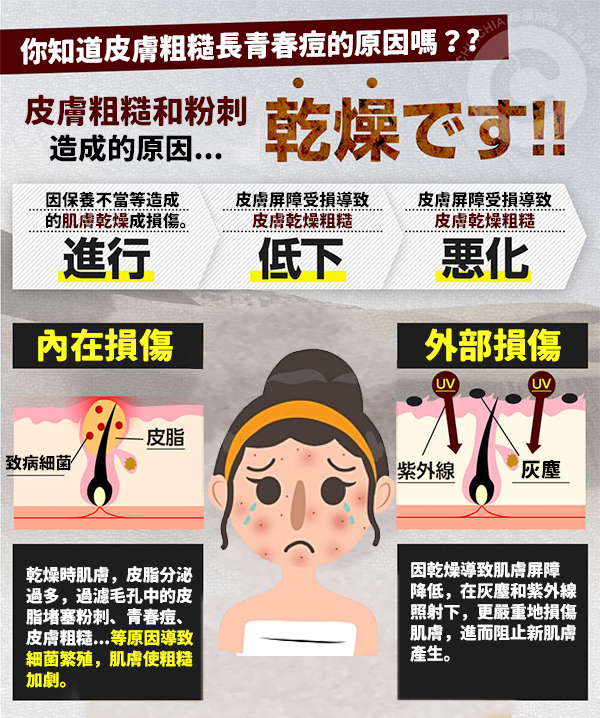 * 僅靠潔面無法解決乾燥及皮膚損傷問題,舒敏去痘極效護理凝露能修復肌膚屏障,