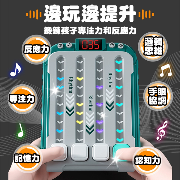 5台以上 $98元/台 * 跟著節奏玩起來,比一比誰手速快! * 感受音樂、遊戲、燈光帶來的快樂! * 提升反應力,益智遊戲 * 邊玩邊提升反應力、專注力、記憶力、 邏輯思維、手眼協調、認知力 * 3種模式,6首曲目 * 外盒尺寸:15*11.5*3.5 cm * 顏色:紅、藍、綠,顏色隨機出貨 【下單前:務必"詳閱購物須知,下單視為接受"購物須知"內容】 【下單不保留商品,要結單請主動與客服聯繫】 【公司提供多種下單管道,庫存數量僅供參考,實際數量請洽小幫手】