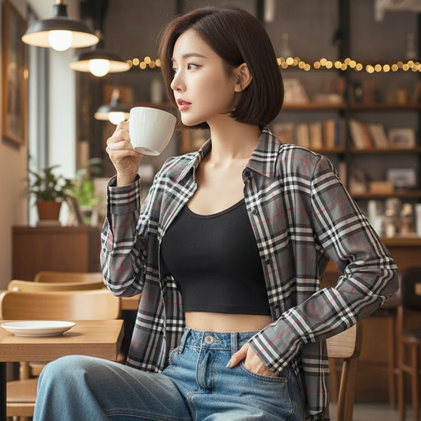 5948 品牌經典格紋/條紋 輕磨毛長襯衫小外套