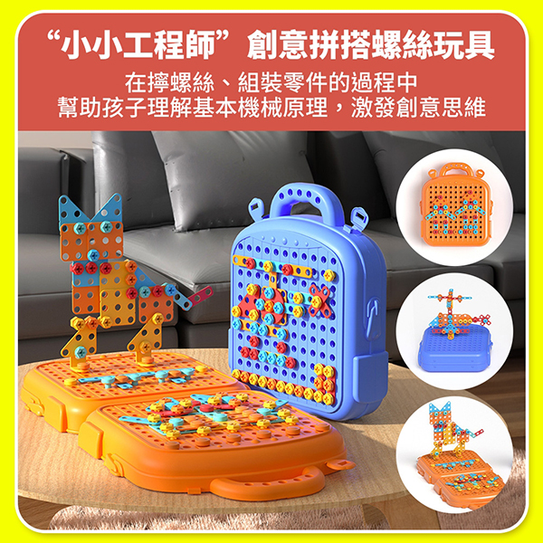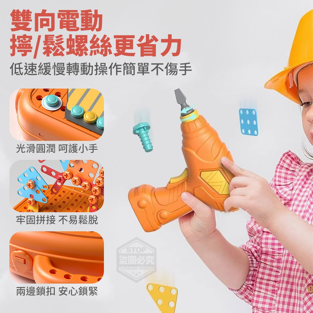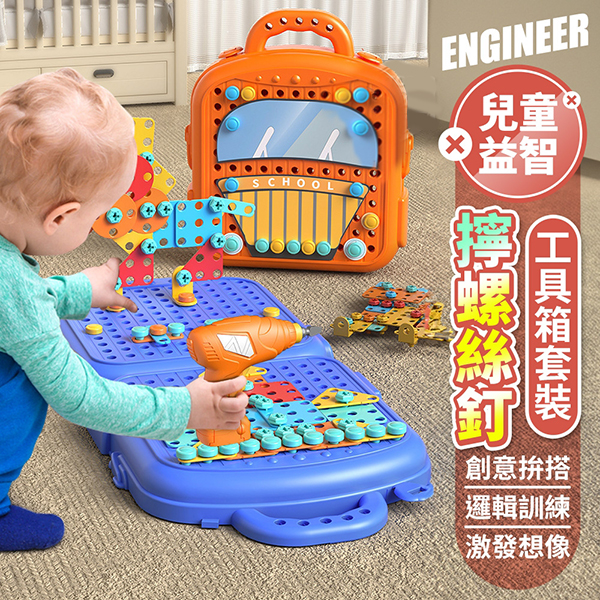 *多樣工具:配有兒童尺寸的螺絲釘、螺絲刀、扳手等小工具