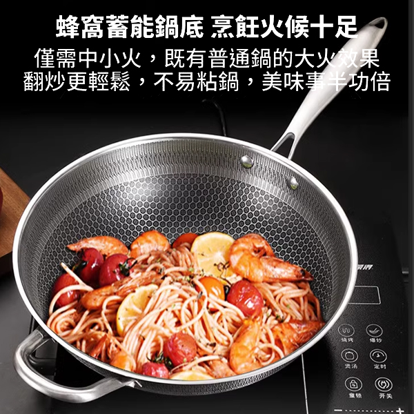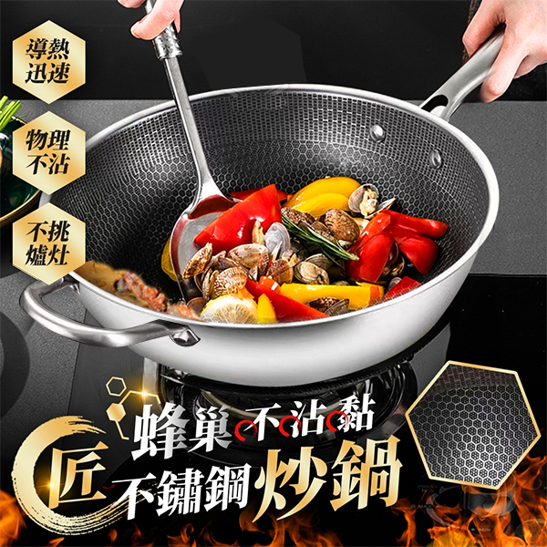 6158不鏽鋼 抗磨蜂巢炒鍋34cm