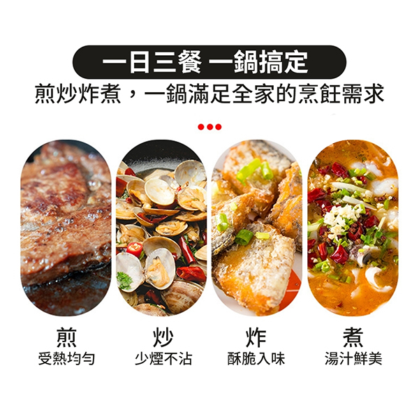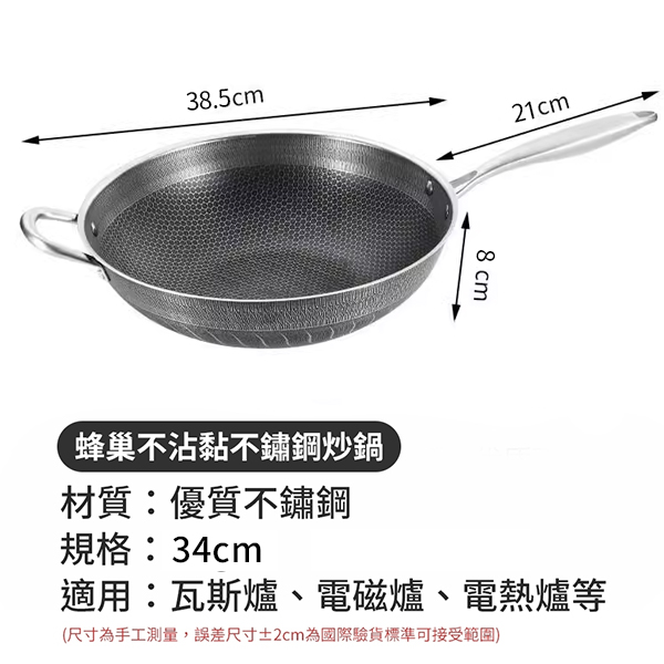 * 採用獨特的蜂巢結構設計,熱能均勻分布, 讓每一道菜都能煎出金黃酥脆的口感! * 不論是煎蛋、炒、炸都能為您帶來完美效果 * 高品質材料製造,抗磨耐用,長期使用不變形! * 材質:不鏽鋼 * 包裝:氣泡袋 * 尺寸:鍋直徑34cm,全長60cm 【下單前:務必"詳閱購物須知,下單視為接受"購物須知"內容】 【下單不保留商品,要結單請主動與客服聯繫】 【公司提供多種下單管道,庫存數量僅供參考,實際數量請洽小幫手】