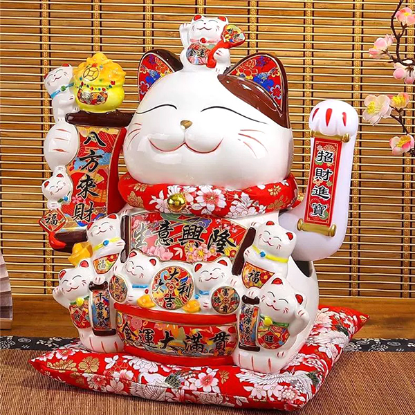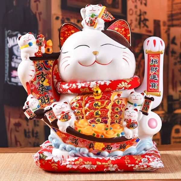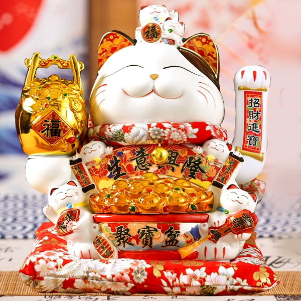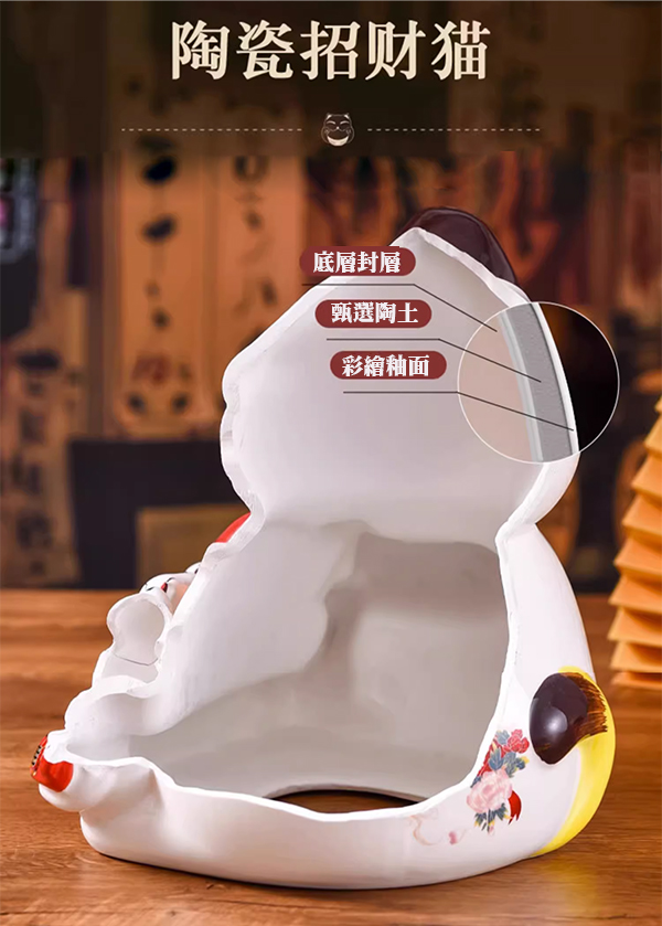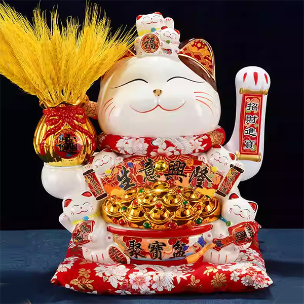 6347 豪華款卷軸/聚寶盆/大麥-大招財貓35cm