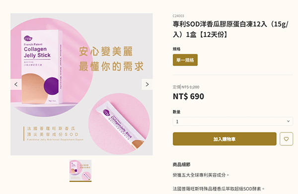 * 專利SOD洋香瓜膠原蛋白凍12入