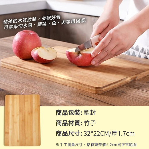 8個以上 $60元/個 * 表面光滑,紋路精美 * 材質加厚又耐用,面積大,拿來切菜、切肉,切蔬果更方便,是你廚房的好幫手 * 可掛在牆上收納起來,不占空間,也可以靠牆站立擺放喔! * 只需用清水沖洗,即可將砧板洗乾淨 * 尺寸:32cm * 22cm *厚1.7cm 【下單前:務必"詳閱購物須知,下單視為接受"購物須知"內容】 【下單不保留商品,要結單請主動與客服聯繫】 【公司提供多種下單管道,庫存數量僅供參考,實際數量請洽小幫手】
