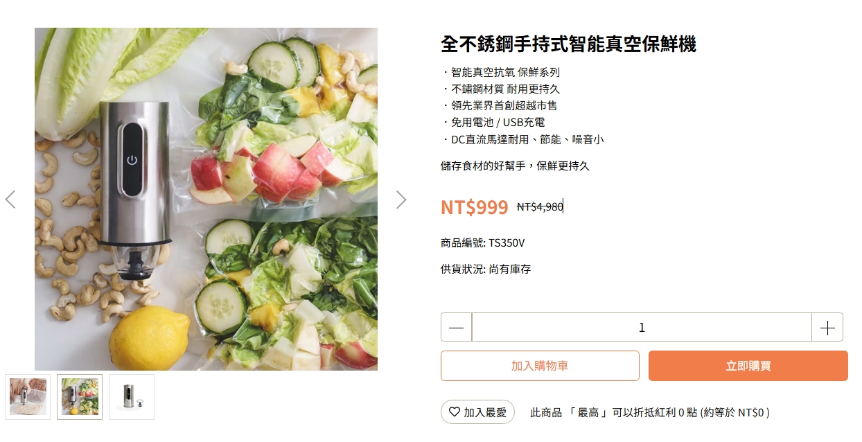 6445 全不銹鋼手持式智能真空保鮮機 贈 保鮮袋x5