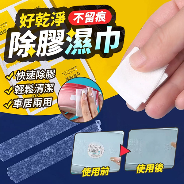 * 一擦即淨神奇無痕除膠濕巾,去膠無痕,一擦就乾淨!