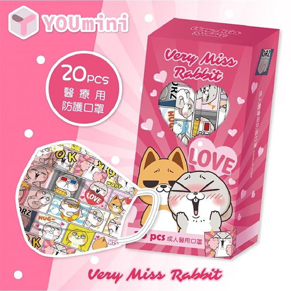 6702 寶可夢大集合/好想兔 成人平面醫用口罩 20入/盒