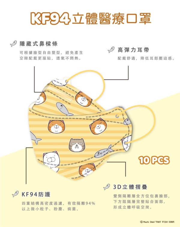 6742 正版授權 白爛貓 KF94立體 雙鋼印醫療口罩-10入