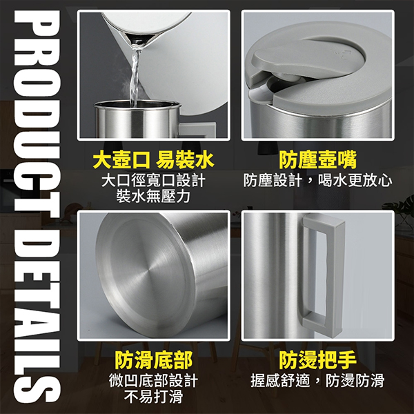 6844 按壓大容量不鏽鋼水壺1800ML
