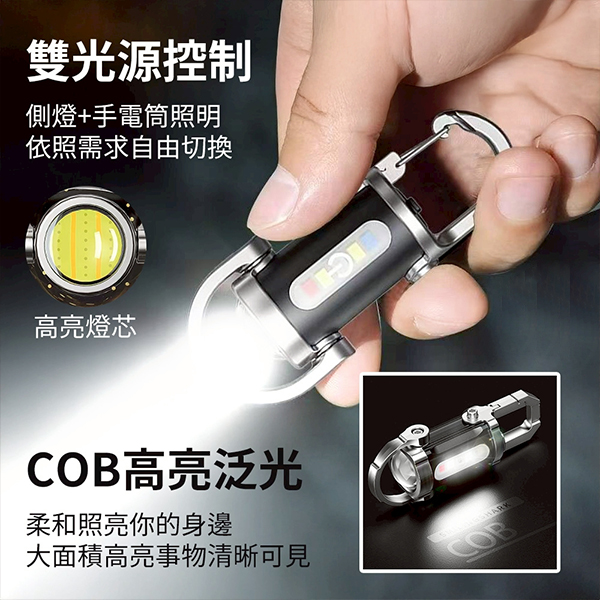 * 雙光源控制,側燈+手電筒照明,依照需求自由切換,明亮不打折!