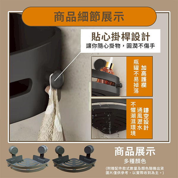 * 尺寸:牆角單邊長21CM/高5.2cm/商品最長直徑30CM/吸盤高度13CM