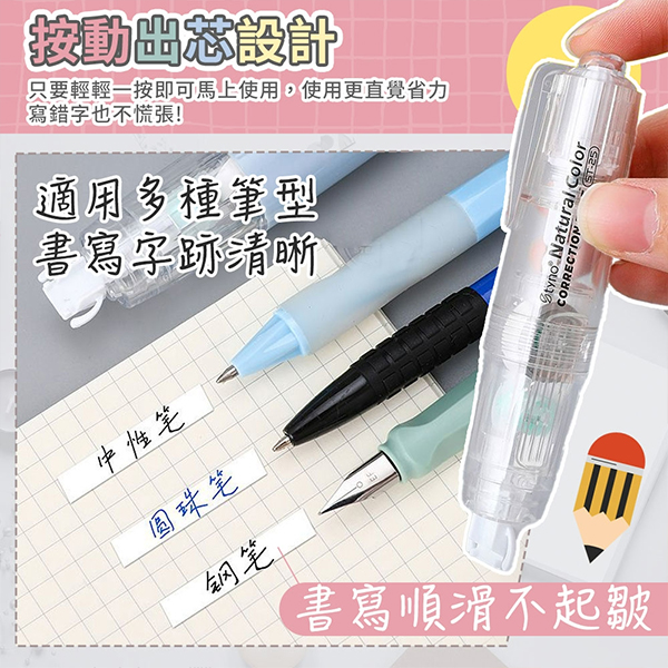 * 塗改平整,修正帶服貼於紙面,不易起邊脫皮!