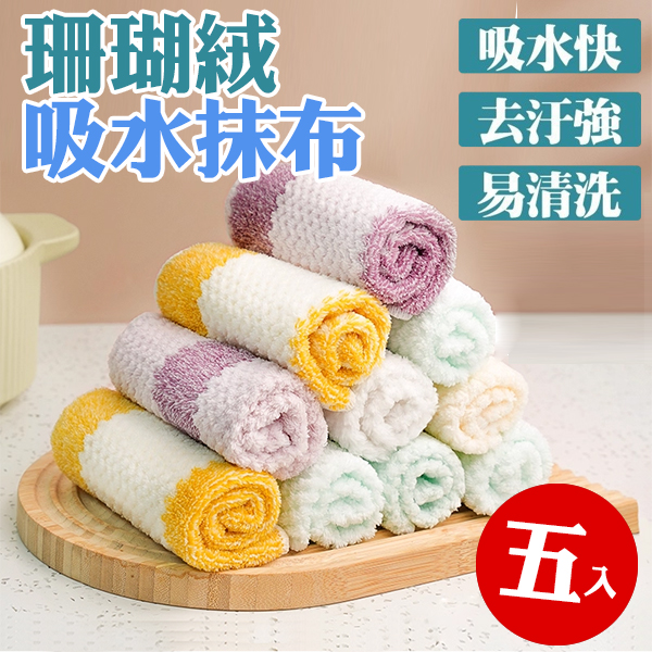 7081 紫色珊瑚絨吸水抹布-5入