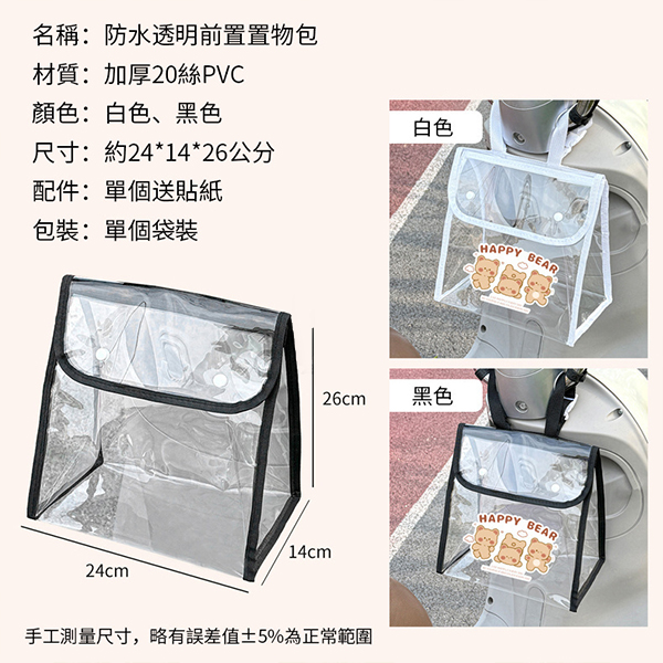 12個以上 $33元/個 * 輕便出行,解放雙手 * 一包搞定,出行更方便 * 防水透明,前置製物包 * 大開口,拿取便捷 * 鈕扣開合方便 * 加大容量,出行一包搞定 * 高密度透明塑膠材質,無懼雨水潑灑 * 顏色:白、黑,隨機出貨 【下單前:務必"詳閱購物須知,下單視為接受"購物須知"內容】 【下單不保留商品,要結單請主動與客服聯繫】 【公司提供多種下單管道,庫存數量僅供參考,實際數量請洽小幫手】