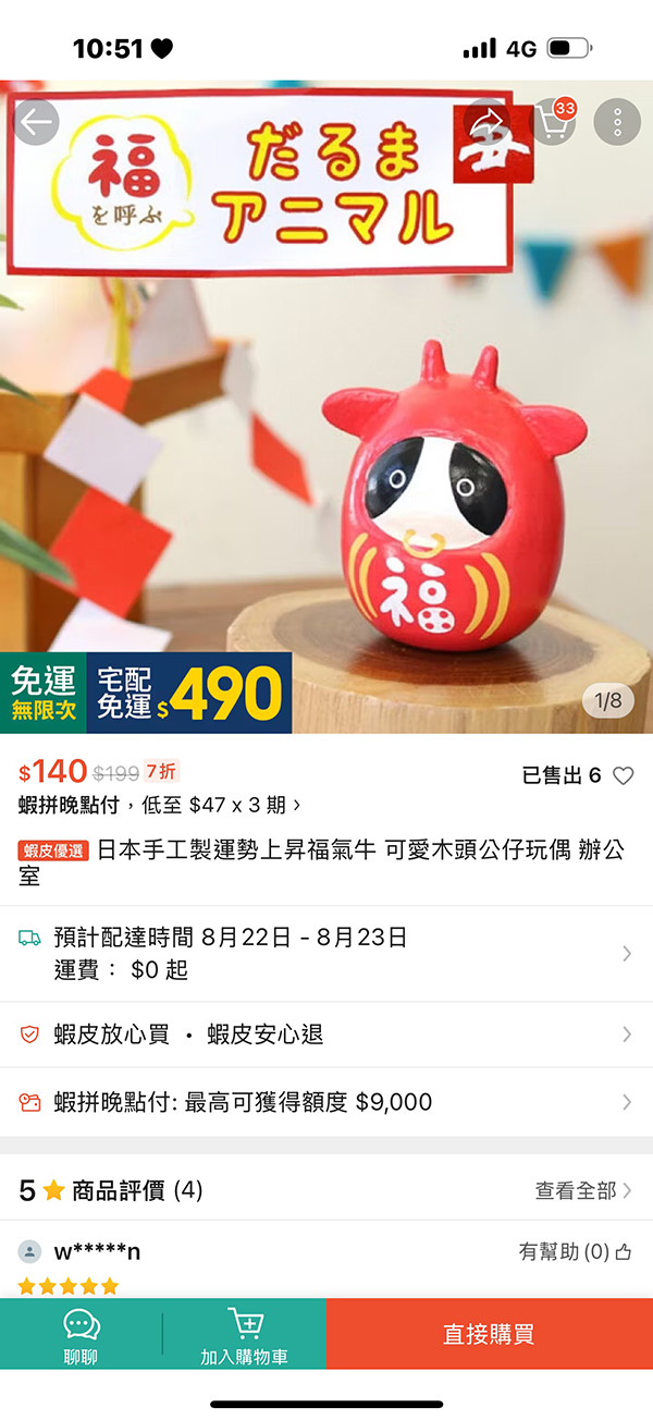 23隻以上 $20元/隻 * 市價:$140元 日本代購品、日本設計 * 象徵新的希望與未來!改變一下自己周遭的氣場~ * 不論是健康、事業、學業、運氣各方面~ * 都能在未來開始扭轉運勢!讓我們「牛」轉乾坤 * 材質:木製 * 尺寸:7x8cm 【下單前:務必"詳閱購物須知,下單視為接受"購物須知"內容】 【下單不保留商品,要結單請主動與客服聯繫】 【公司提供多種下單管道,庫存數量僅供參考,實際數量請洽小幫手】