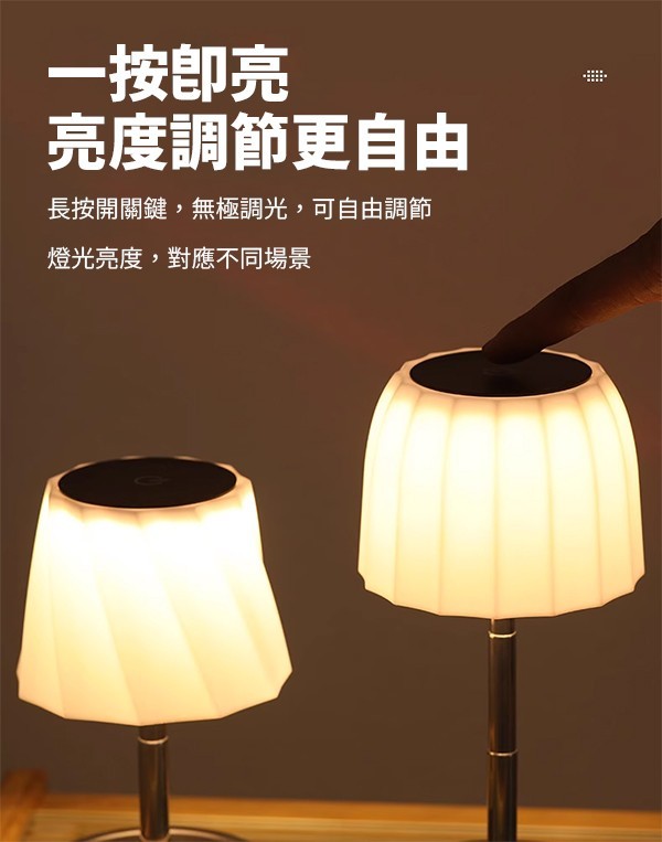 5台以上 $100元/台 * 調光伸縮檯燈-簡約黑 * 柔光好不刺眼,護眼無憂 * 一按即亮,亮度調節更自由 * 長按開關鍵,無極調整亮度,對應不同場景 * 無線充電設計,移動更便利,無線設計更美觀 * 可伸縮式,高照明亮度,照亮整個桌面 * 觸控開關,長按可進行無極調光 - 款式隨機出貨 【下單前:務必"詳閱購物須知,下單視為接受"購物須知"內容】 【下單不保留商品,要結單請主動與客服聯繫】 【公司提供多種下單管道,庫存數量僅供參考,實際數量請洽小幫手】