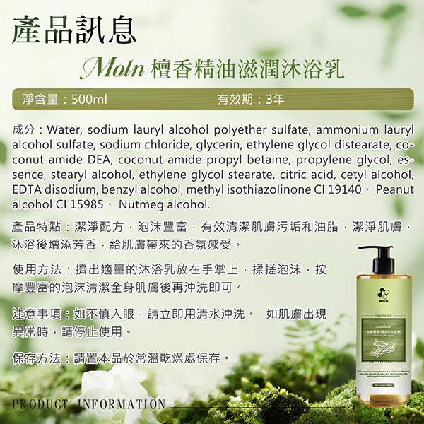 * Moln檀香精油滋潤沐浴乳,讓你一洗就愛上,洗出仙氣女神香