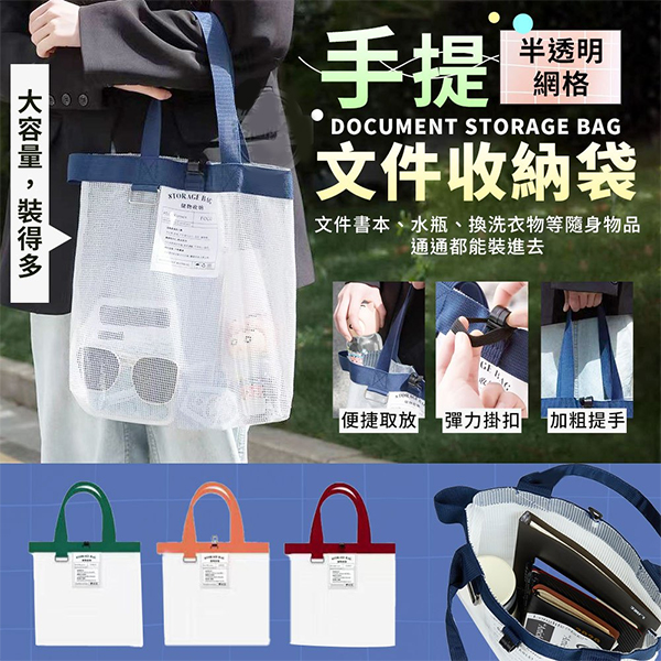 * 大容量收納!半透明網格手提文件收納袋