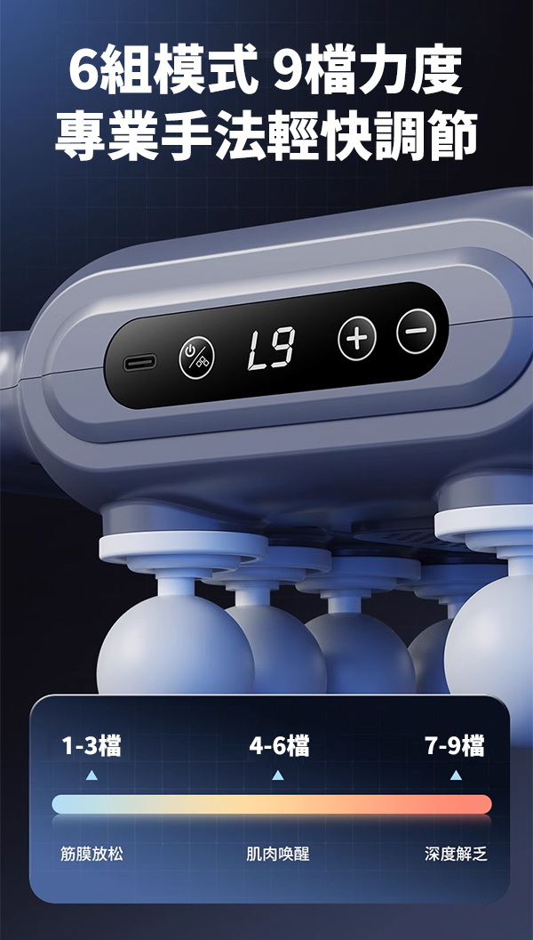 * 9段力度調整 – 從溫和放鬆到專業深層,隨心切換