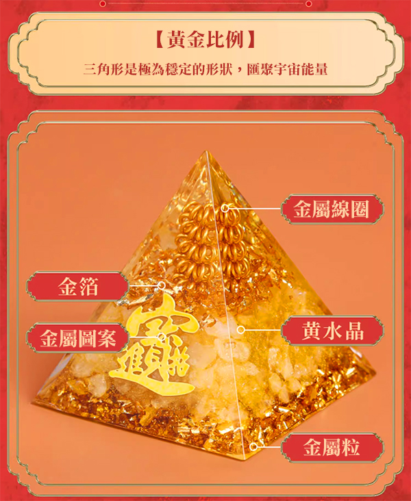 V 金字塔結構: 穩固、強大的幾何結構,高效匯聚周圍的正向能量和財富磁場。