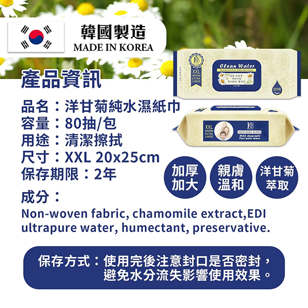 7316 韓國製造 洋甘菊濕紙巾80抽