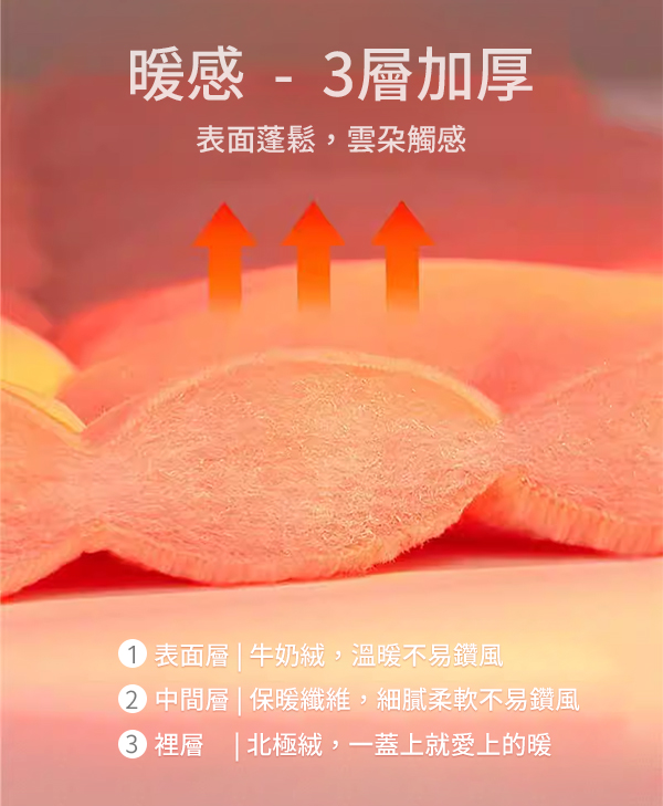 - 保暖羔羊絨&雪花絨-鎖溫保暖,多層次觸感體驗,舒適親膚