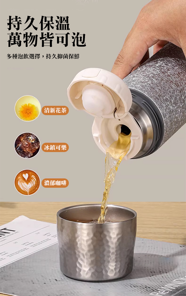 7374 純鈦保溫瓶-附富氫礦石茶隔-450 ml