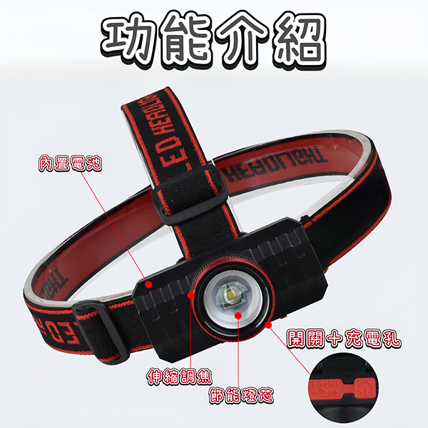 這款XPE-LED變焦頭燈專為戶外探索、露營、徒步旅行等活動設計,