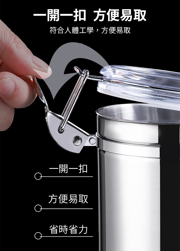 透明上蓋設計: 透過密封圈即可直接觀察罐內儲物,一目了然,簡單方便!