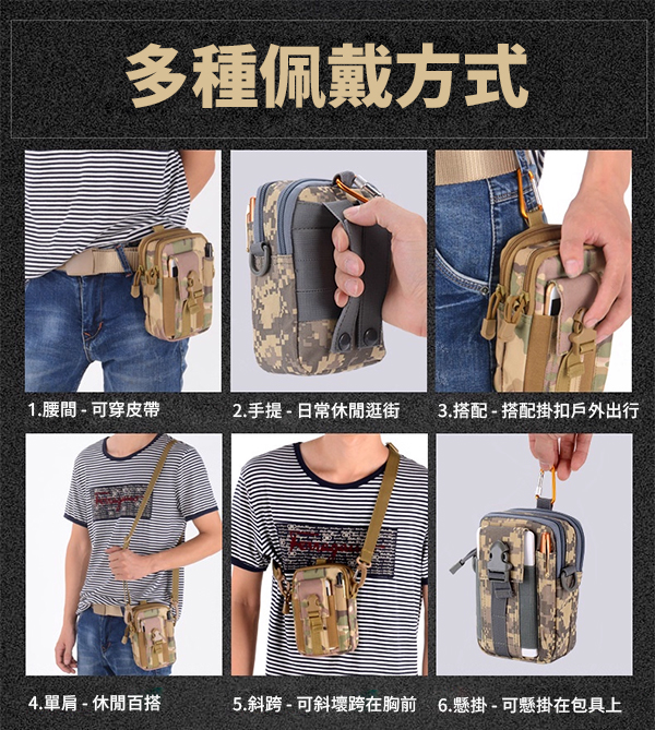 - 多種佩戴: 附贈獨立背帶,可手提、單肩、斜挎、腰掛、背掛,隨時轉換,攜帶方便。