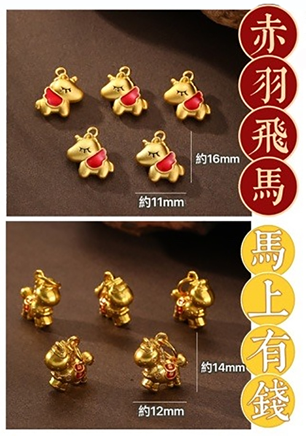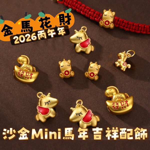 - 這款精緻的沙金Mini馬年吉祥配飾,設計Q萌討喜,金色光芒璀璨。