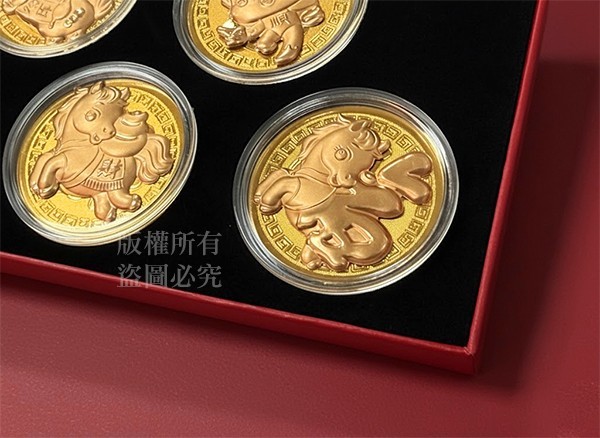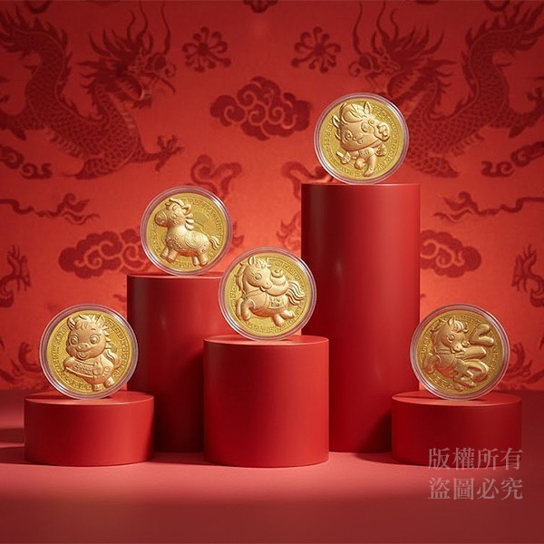 - 財富象徵: 馬象徵奔騰向上、馬到成功,金幣代表財富積累,寓意來年事業騰飛、財源廣進。