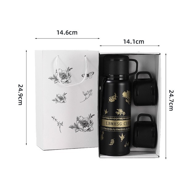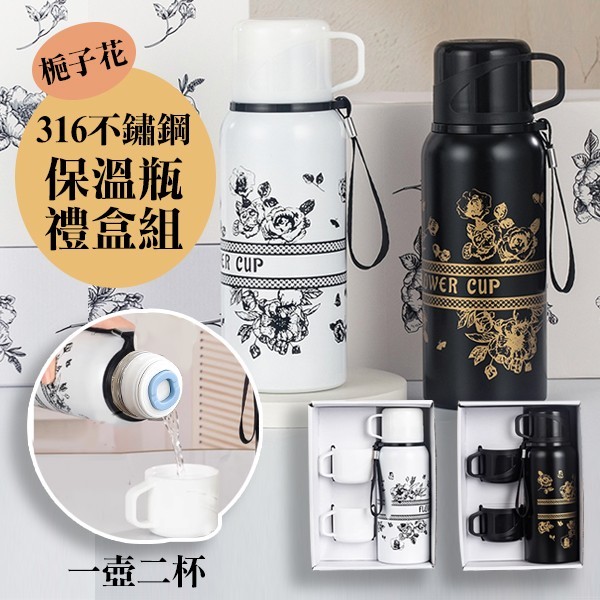 - 體貼設計,分享美好: 獨特 「一壺二杯」 禮盒組,包含保溫瓶及兩個精緻小杯。
