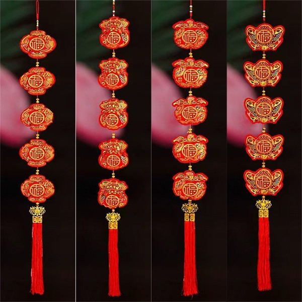- 五連串掛飾。紅火喜慶,高檔植絨布藝,營造濃濃春節氛圍!