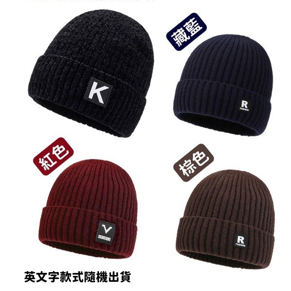 5961 英文字素面加絨針織帽