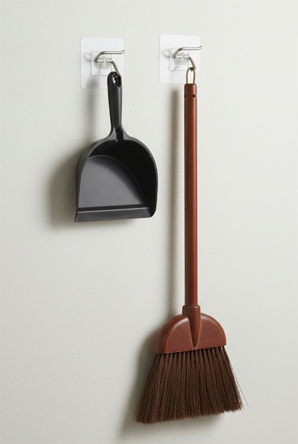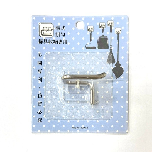 橫式設計,收納神器: 特別適合掃具(如掃帚、拖把、畚箕)等帶有圓形掛孔的工具收納,整齊美觀,隨手可得。