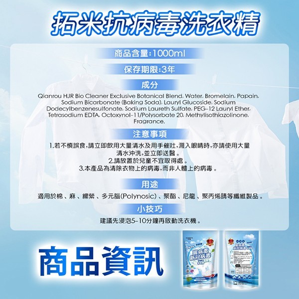 7601 台灣製造 拓米抗病毒洗衣精-1000ml
