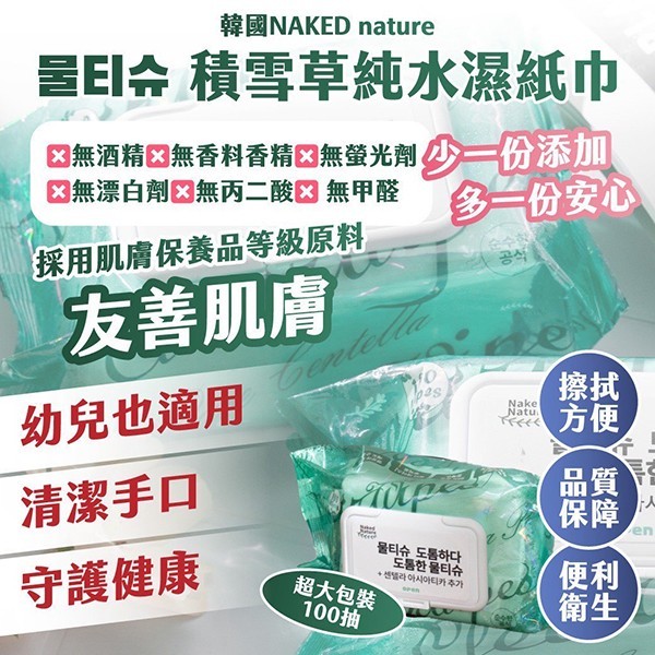 韓國NAKED nature 물티슈積雪草純水濕紙巾